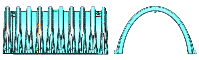 高分子雨水模塊通過(guò)注塑成型可用于雨水的滲透、調(diào)蓄和儲(chǔ)存。目前,國(guó)內(nèi)常見的雨水模塊為矩形雨水模塊,該類雨水模塊存在安全性差、空間利用率低和維護(hù)困難等缺陷。高分子雨水模塊采用拱形設(shè)計(jì),具有成本低、安全性高、運(yùn)輸方便、安裝簡(jiǎn)單、維護(hù)容易等特點(diǎn),在小區(qū)、道路、公園、停車場(chǎng)等場(chǎng)所得到了廣泛的應(yīng)用。