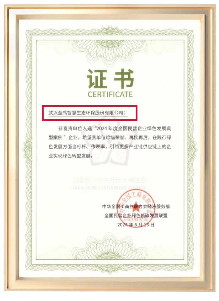 大會期間,圣禹生態(tài)的城市新型智能分流井綠色技術創(chuàng)新案例——湯湖流域示范項目,成功入選《2024 年度全國民營企業(yè)綠色低碳發(fā)展典型案例匯編》。